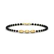 Black beads in gold baby bracelets hold a lot of cultural and traditional meaning in our Indian culture. Black beads have always been associated with purity and said to ward off the evil eye. Many cultures believe these beads protect infants from the evil eye, a harmful glare that can bring misfortune. The black color symbolizes strength and resilience, serving as a shield against negative energies, and protecting their children from misfortune and sickness.