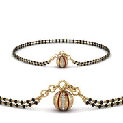 At Mangalsutra Online, you can customize your ideal bracelet mangalsutra. Pick gemstones that suit your style or add engravings that share your story. You can also choose from different gold tones & carats to fit your taste, making your piece as special as your love story. Here are some of our best seller designs in the US for hand mangalsutra bracelets.