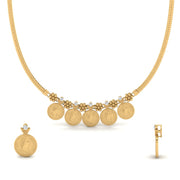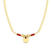 The combination of black beads with gold is another distinctive feature in the authentic thali designs for hindu bride. The black beads are believed to protect you against negative energies, making them an essential part of the mangalsutra's design. The blend of materials of black beads, diamonds, and gold helps create a striking contrast. Many South Indian mangalsutras incorporate coin motifs, which symbolize abundance and good fortune.